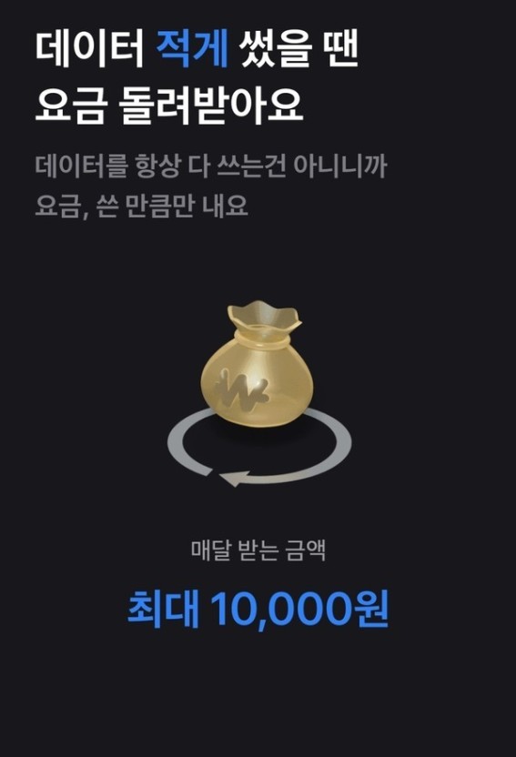 토스모바일은 남은 데이터만큼 최대 1만 원까지 환급을 해주는 혜택이 있습니다.