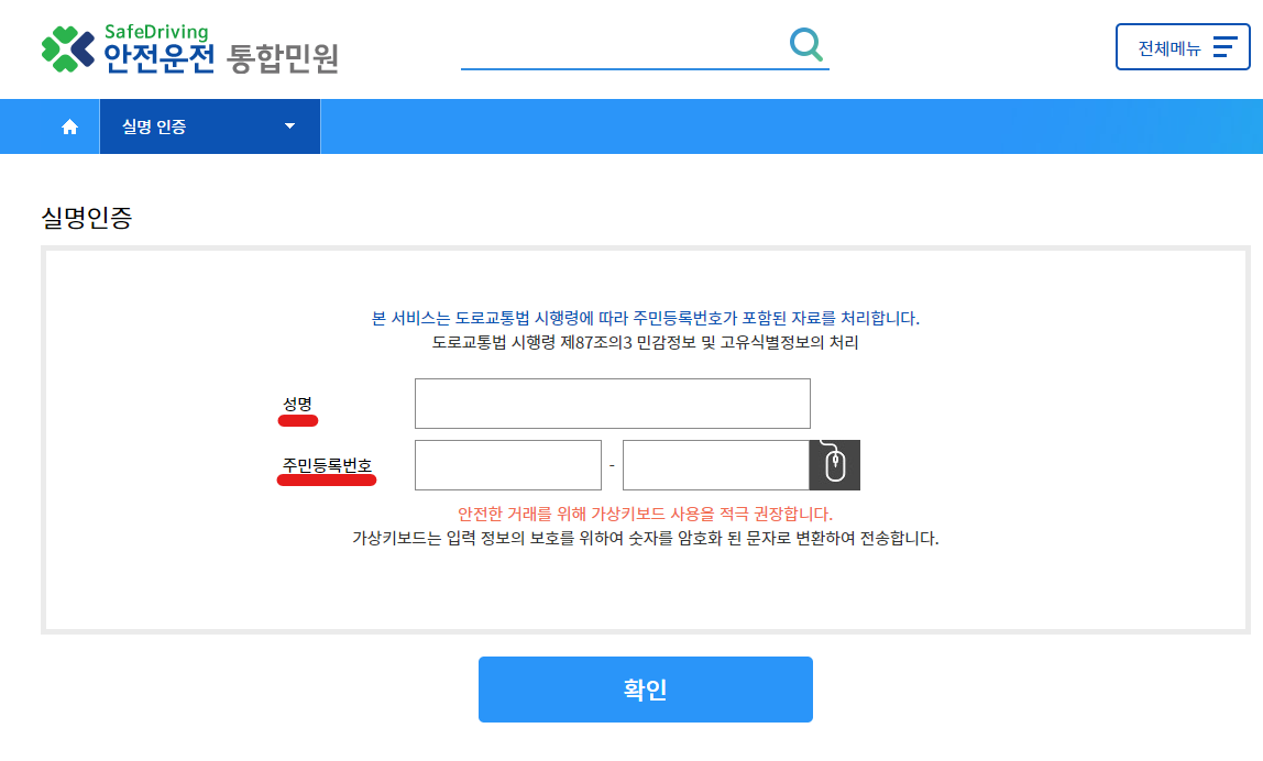 운전면허증 재발급을 위한 이용약관을 확인하신 뒤