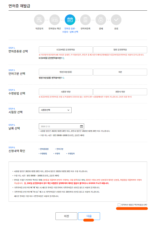 운전면허증 재발급을 위한 이용약관을 확인하신 뒤